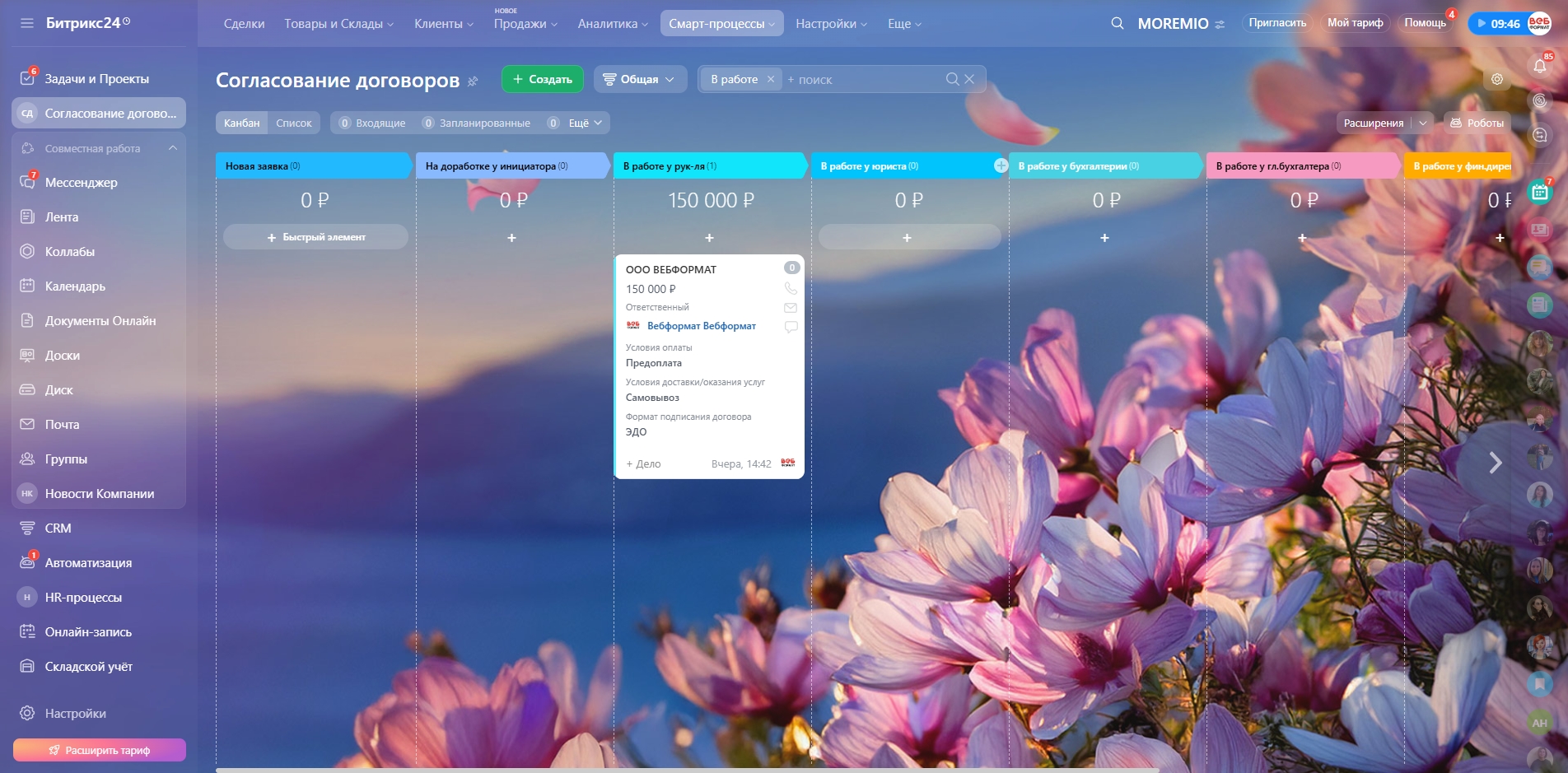 Автоматизация согласования договоров для Moremio в Битрикс24
