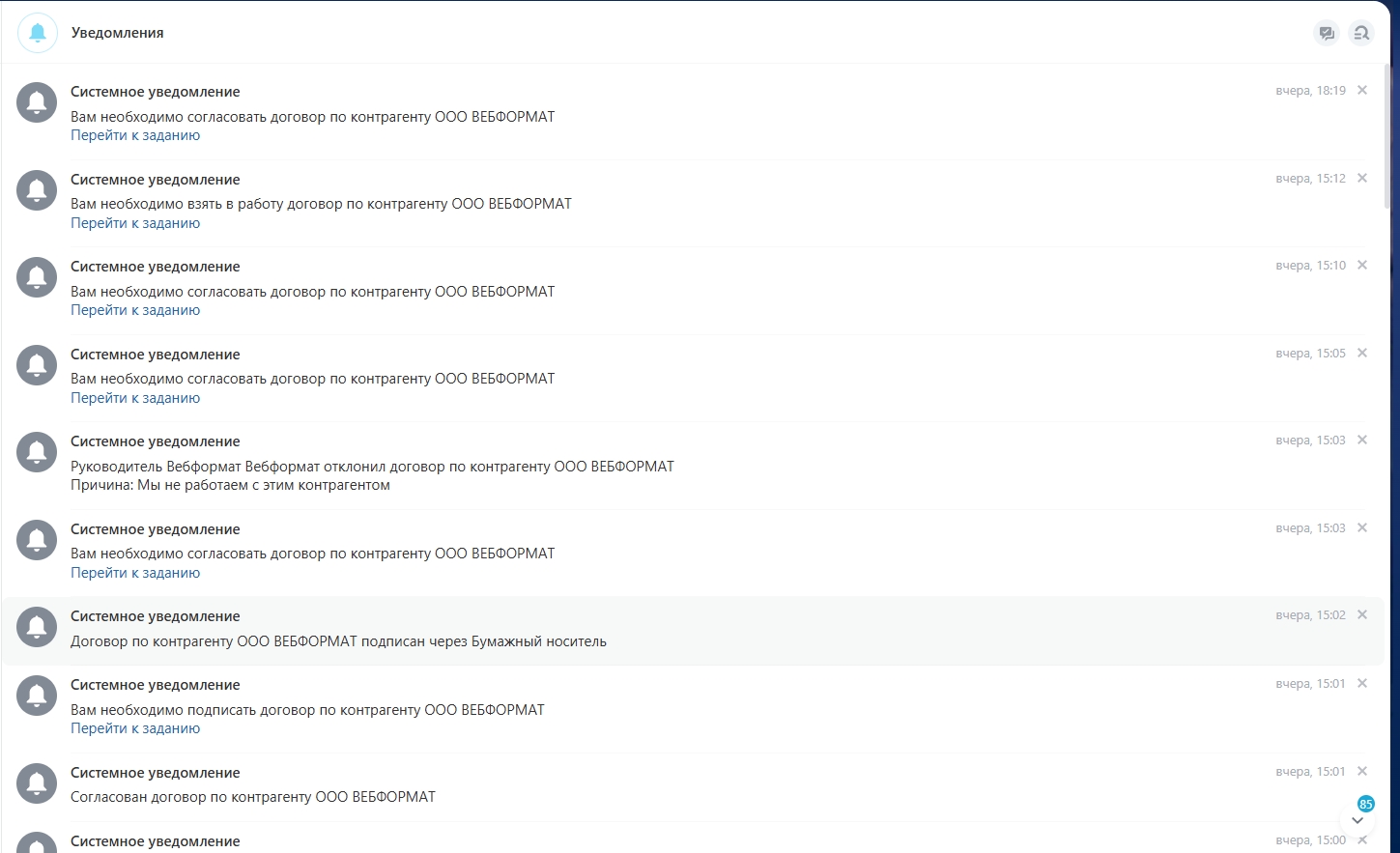 Рис. 7 — Системные уведомления о задачах и ключевых событиях процесса.