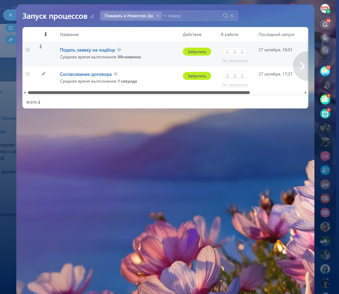 - Настроить универсальные задания и уведомления для всех участников процесса.