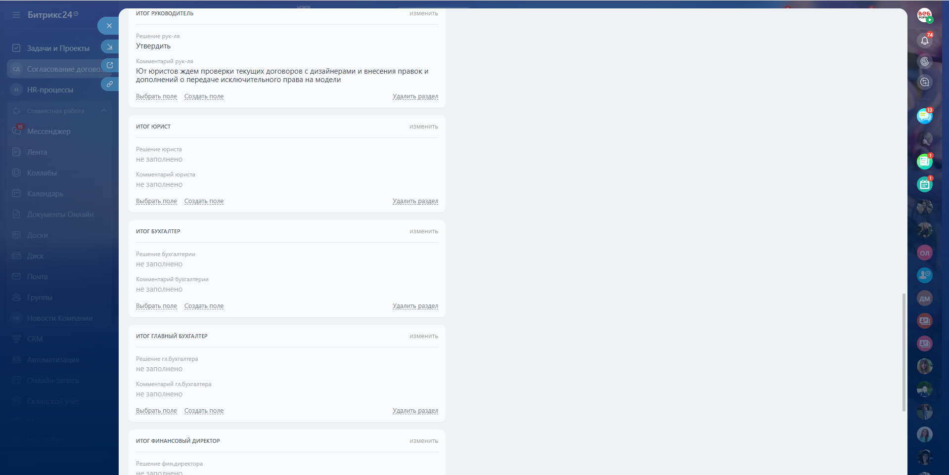 Систематизация и автоматизация процесса согласования договоров в Bitrix24